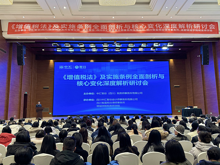 2026年1月21日,由中汇智谷(四川)税务师事务所有限公司主办,四川中汇智谷会计师事务所、四川智盈税谷律师事务所、成都锦城学院税务师学院承办的“《增值税法》及实施条例全面剖析与核心变化深度解析研讨会”在成都新华宾馆成功举行。此次研讨会吸引了800余名企业代表参会,共同聚焦新法变化,探讨新税制下的合规策略与应对之道。