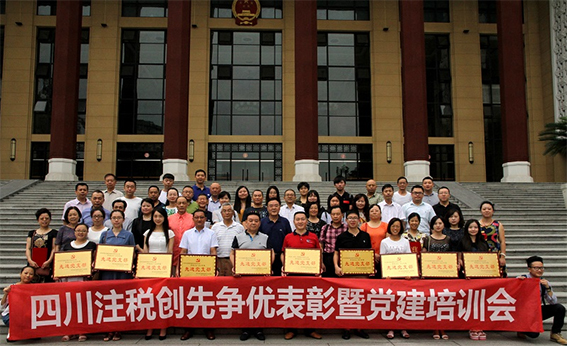 2017年8月18日,四川注税创先争优表彰暨党建培训会在大成宾馆隆重举行,省注税行业党委成员、全省注税行业基层党组织书记、优秀党员、优秀党务工作者共59人参加了会议。会议由注税行业党委张炜副书记主持,行业党委祝培洪书记在会上发表了重要讲话。